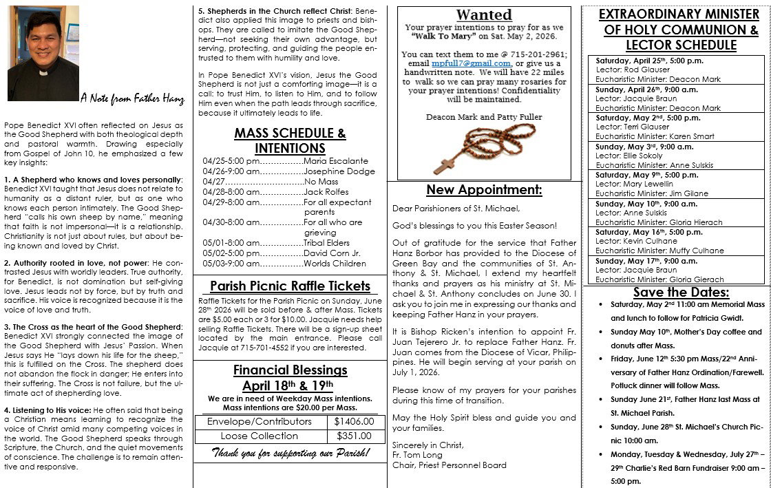 Sacrament of Baptism: please contact parish office to register and make arrangements. Parish office hours are Mon-Thurs 8:00 am to 2:00 pm. If you are unable to come in during our normal office hours, please download the registration form below and drop it off with your $10.00 registration fee in the drop box just outside of the office door. Thank you.